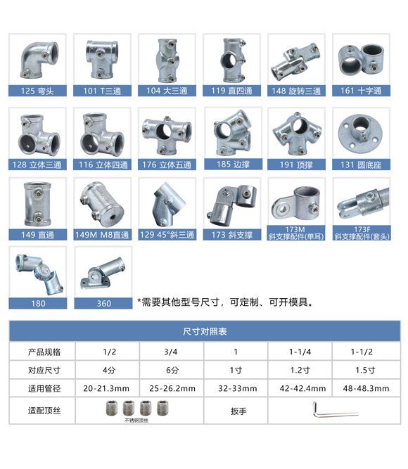 镀锌钢管连接件25免焊接钢管固定接头架子铝合金方管连接件紧固件