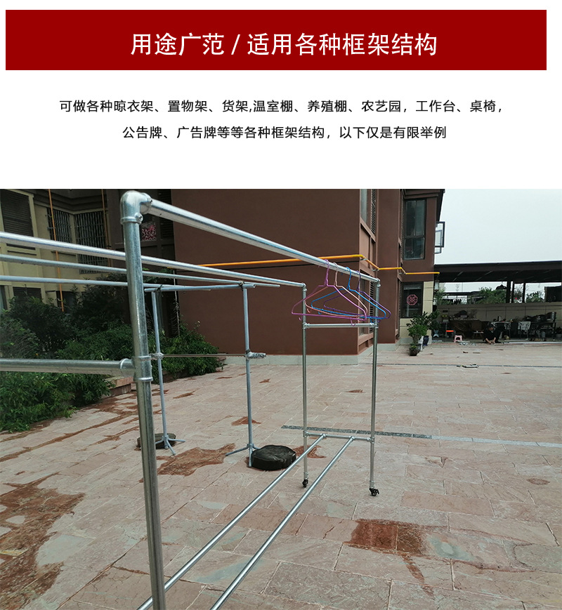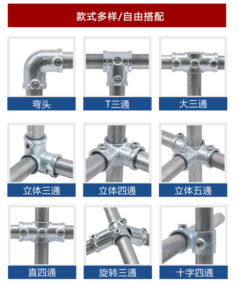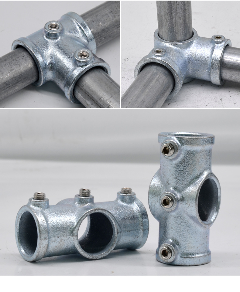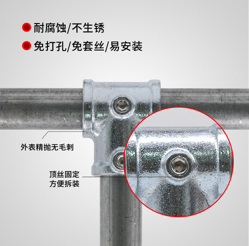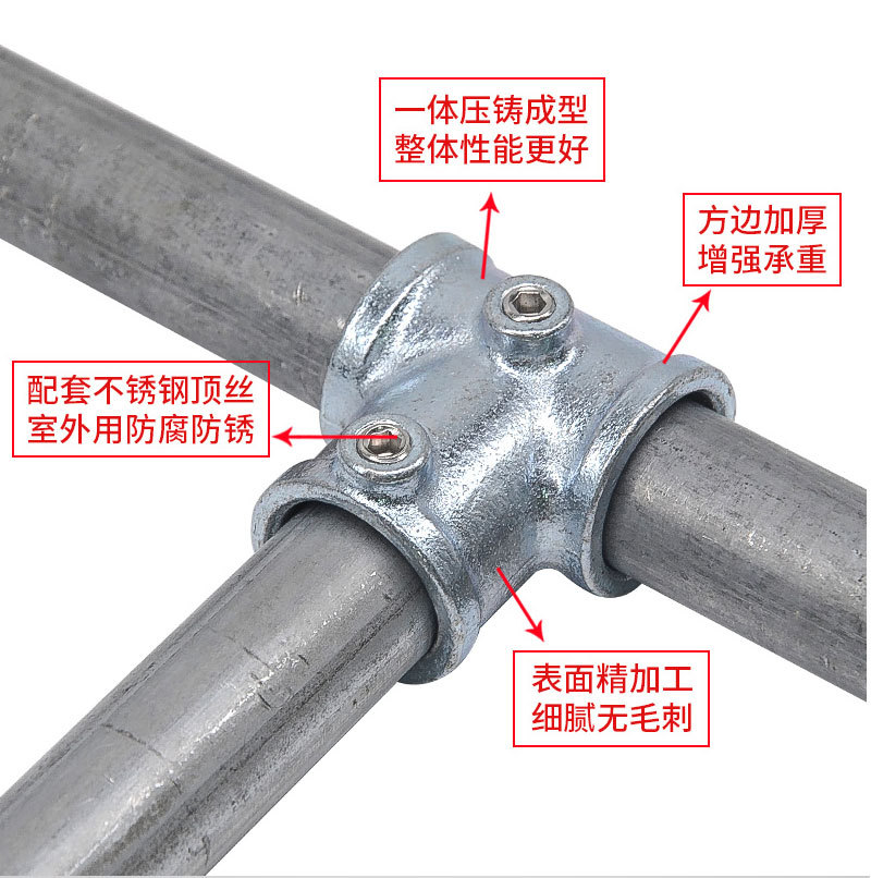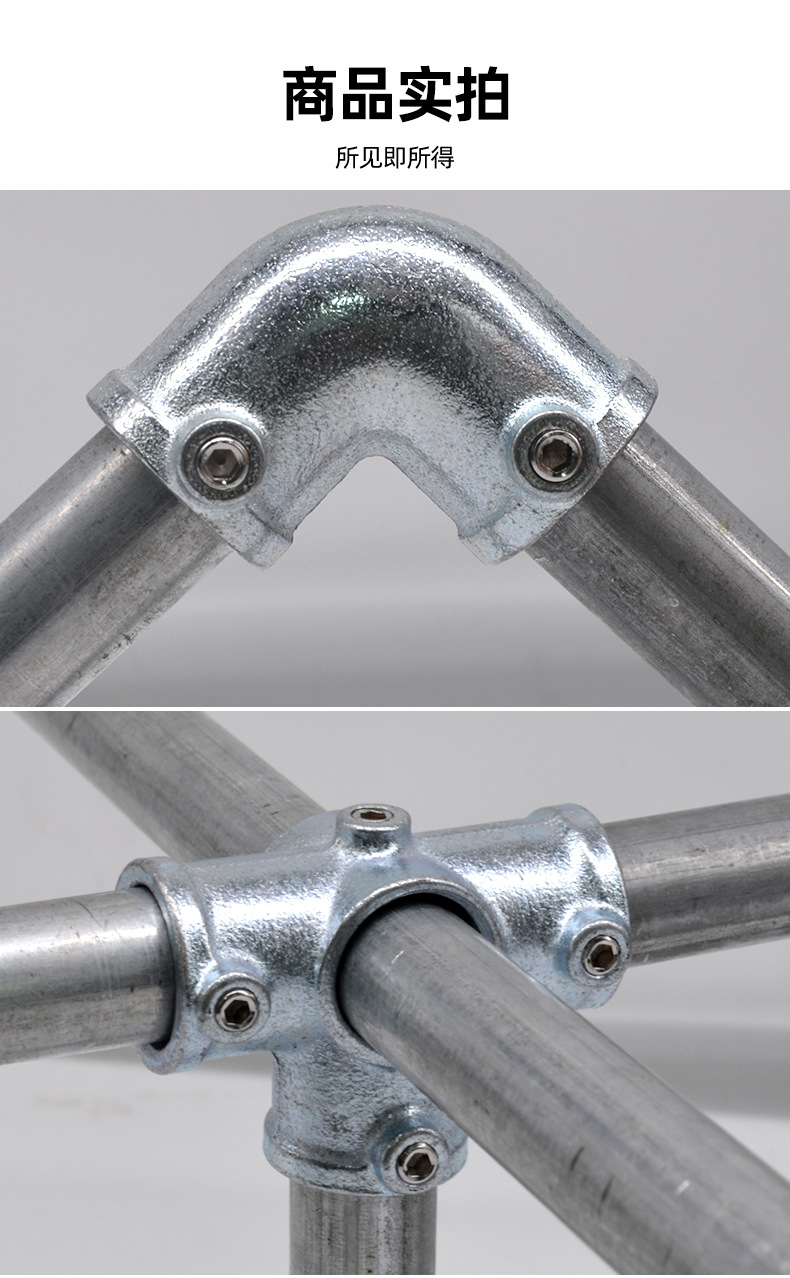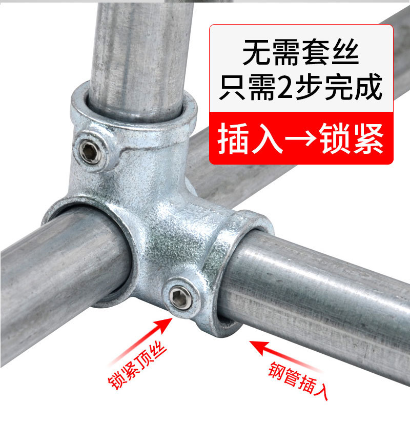 圆管连接件镀锌钢管链接件铝合金免焊接固定卡扣晾衣架三通接头