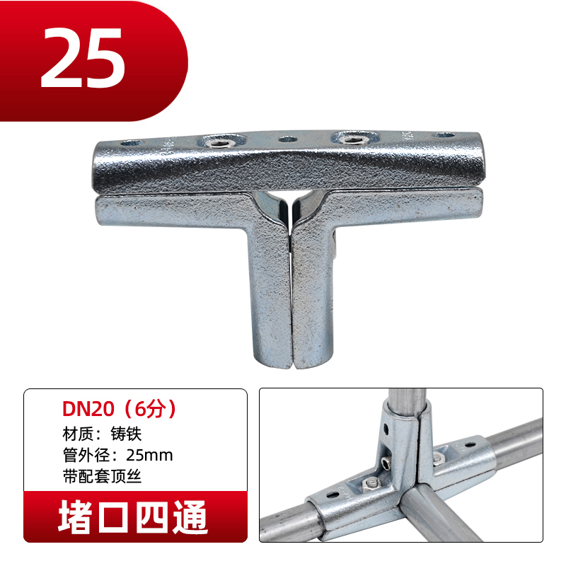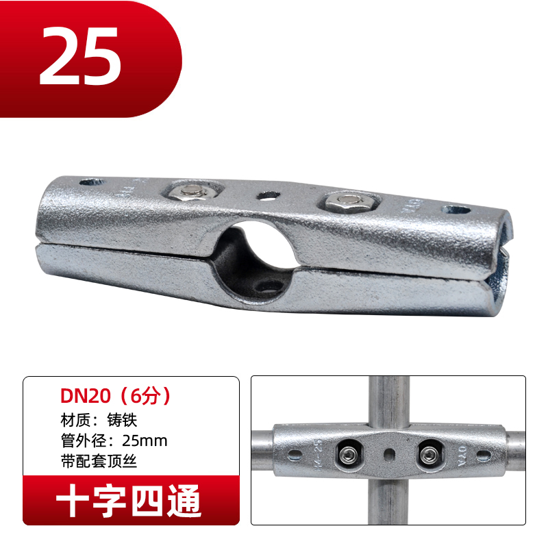 EIT4分6分1寸晾衣架接头钢管连接件镀锌圆管固定卡扣免焊接安装配件