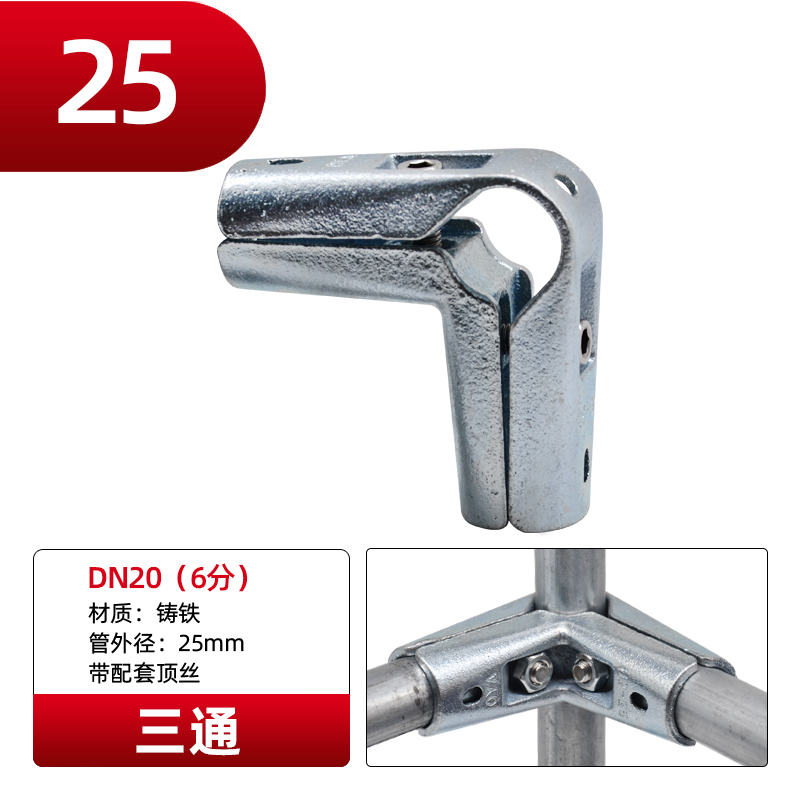 圆管连接件镀锌钢管链接件铝合金免焊接固定卡扣晾衣架三通接头